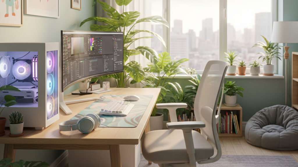 - ブルーライトカット眼鏡や適切な照明で目の疲労を軽減する。